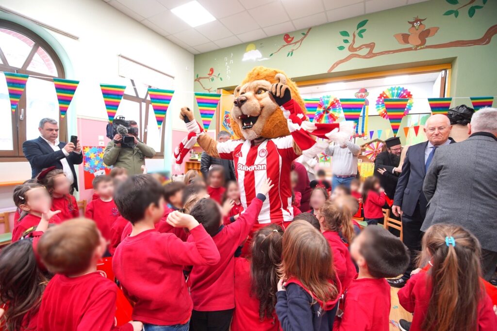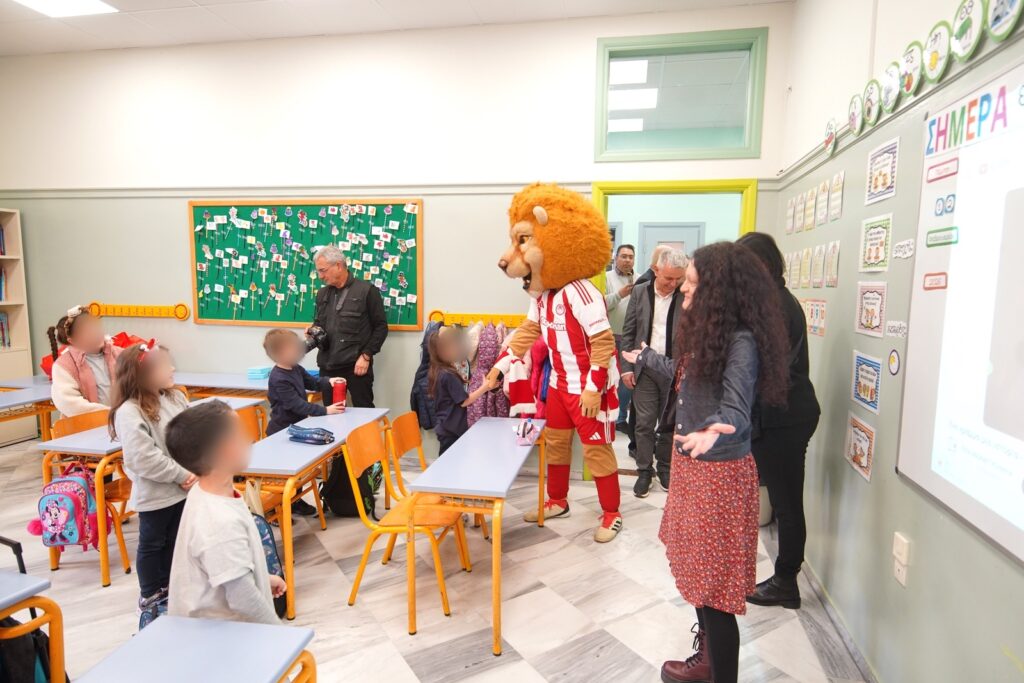 Ξεχωριστή νότα ενθουσιασμού χάρισε η παρουσία της αγαπημένης μασκότ «Λεόνε»🦁, η οποία περιηγήθηκε στις τάξεις, φωτογραφήθηκε με τα παιδιά και μοίρασε δώρα, σκορπίζοντας ενέργεια, χαμόγελα και ενθουσιασμό σε ολόκληρη τη σχολική κοινότητα.